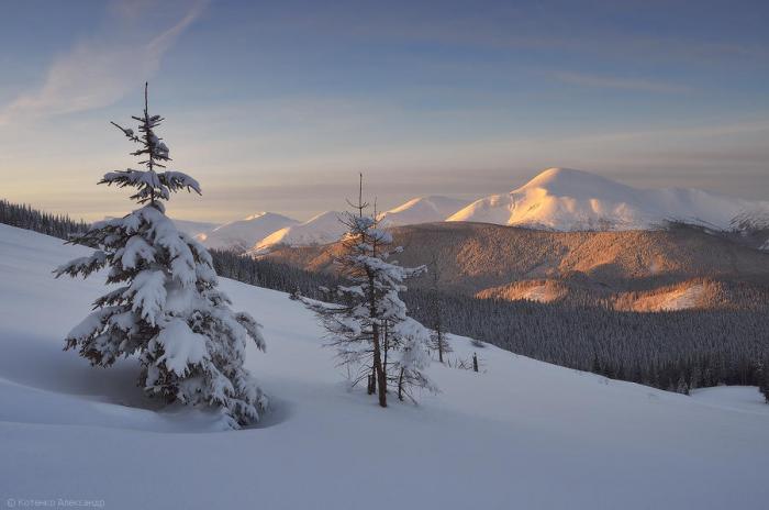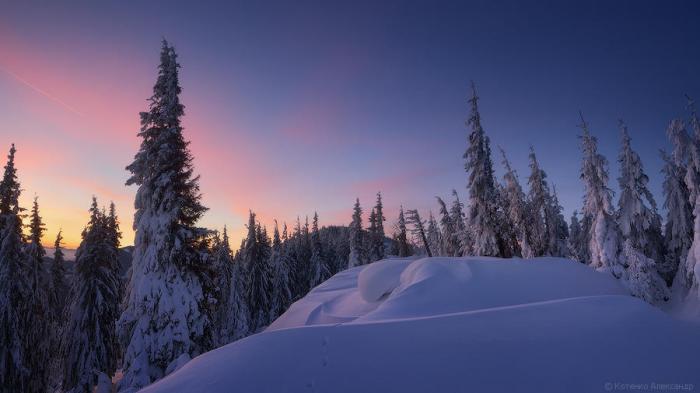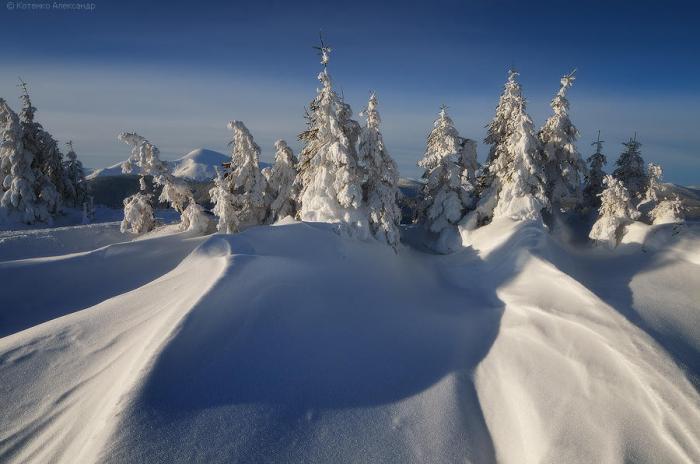 Снежные дюны на северо-западной стороне хребта Кукул.