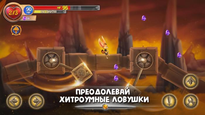 В игре семь интересных уровней: ледяной мир, жаркая пустыня, тропические леса, мрачные подземелья, древние руины и мир вне времени. В платформере для прохождения уровней нужно преодолевать очень много ловушек. Они не просто стоят и ждут неосторожного путника. Многие из них стреляют, крутятся, перемещаются. Всего одна оплошность и жизнь будет потеряна. В игре много разнообразных монстров. К каждому из них нужно найти свой подход. Герою придется сражаться не только с помощью магии, но и меча. Особенно сложно будет в бою с боссами. У каждого из них есть слабое место, но его еще нужно найти.