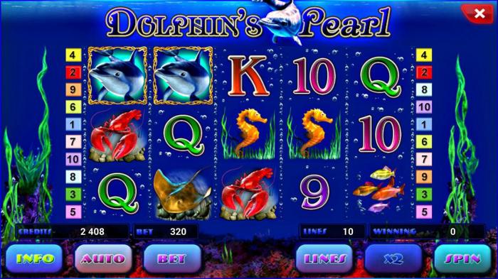Интереснейший слот и Dolphins Pearl (Жемчуг дельфина), в котором символы практически оживают, особенно в выигрышных ситуациях. Музыкальное сопровождение создает иллюзию таинственного звучания морских глубин. Игроку дается шанс примерять на себя роль ловца жемчуга, созерцая обитателей морских просторов. Выигрыш зависит от комбинации символов, а это в свою очередь определяется строжайшей иерархией, определяющейся Жемчугом дельфина. Если делать реальные ставки на деньги, то процент выплат составляет 95 %.
