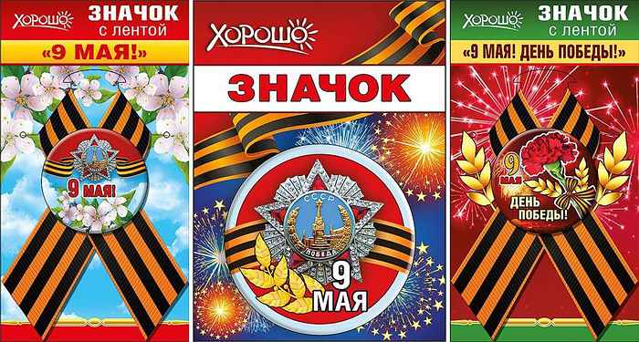 На сегодняшний день существует большое изобилие товаров для праздника. Потому можно легко выбрать необходимый элемент, что бы сделать праздник ярким и оригинальным. Кроме украшения помещения, улиц города, так же хочется лично подчеркнуть свой личный патриотизм. Раньше мы украшали одежду георгиевской ленточкой. Но на сегодняшний день помимо привычной ленточки, можно найти значки ко Дню Победы. Они стали популярны относительно недавно, но очень быстро набрали популярность среди людей.