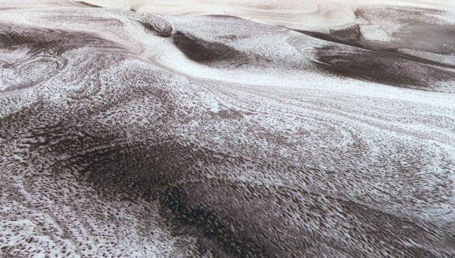 Опубликованы снимки с аппарата Mars Express и зонда Mars Reconnaissance Orbiter. Технически это не снег, а лед из углекислого газа, нагретый солнечный светом. В этом процессе лед переходит в газообразное состояние. Снимки были сделаны в летнее время, когда температура опустилась до -125 °C.