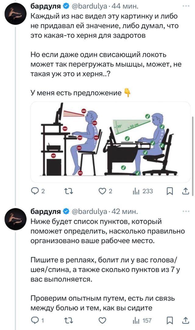 Сидячая работа очень нагружает вашу спину, шею и вызывает головные боли. Пожалуй, это и так все прекрасно знают. А вот, как всего этого не допустить - это уже другой вопрос. Фитнес-тренер поделилась подробным гайдом о том, как облегчить страдания офисных работяг. Давайте поглядим, что же надо делать, чтобы спасти спину и шею.