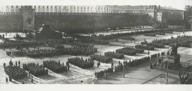 Общее построение войск на Красной площади в честь седьмой годовщины Красной Армии. 23 февраля.