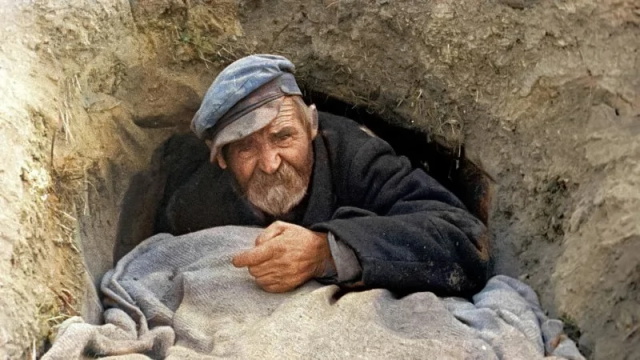 Колхозник С.Т. Степанченко в своем укрытии в деревне под Дорогобужем. Смоленская область, август 1941-го.