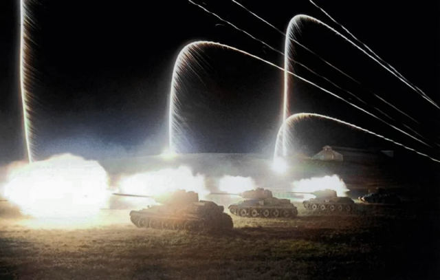 Ночная атака советских танков Т-34-85 у станции Раздельная в районе Одессы, 3-й Украинский фронт, 1944 год.