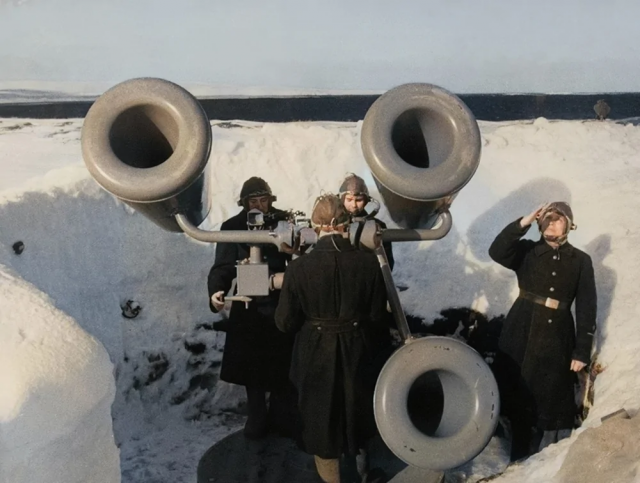 «Слухачи». Аэроакустики противовоздушной обороны Северного флота прослушивают небо. Мурманская обл., п-ов Рыбачий, 1941-1942 гг.