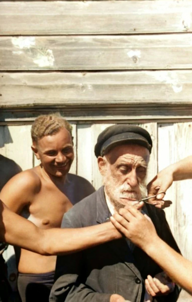 Немецкие солдаты отрезают бороду пожилому еврею. Украинская ССР, июль 1941 года.