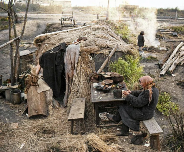 Временные жилища для эвакуированных в тыл советских жителей, 1943 год.