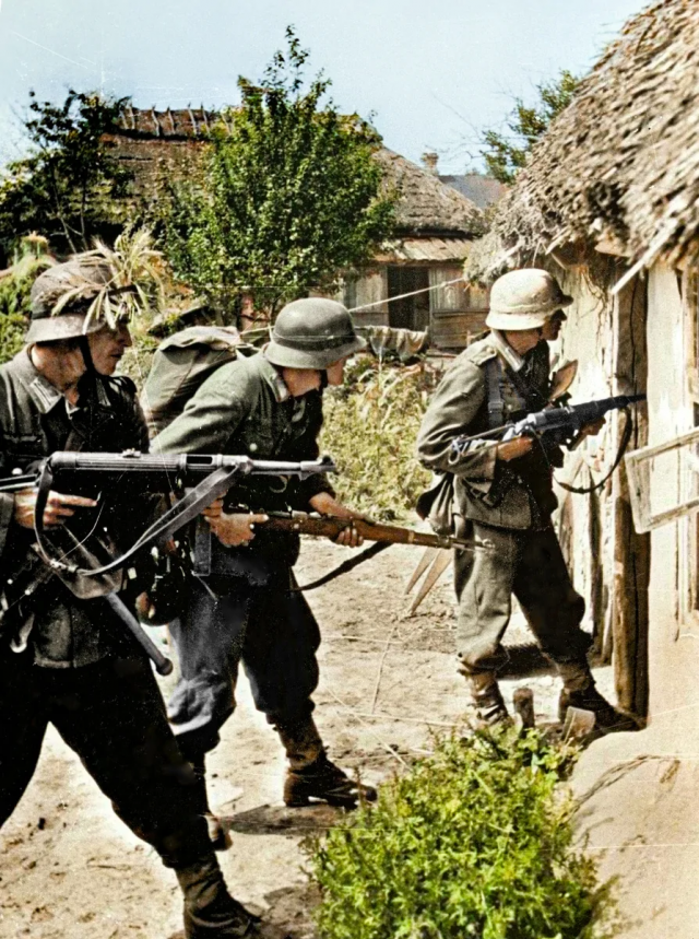 Немцы обыскивают дома в селе Гатное. Киевская область, 1941 год.