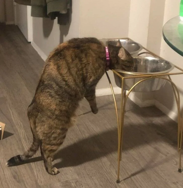 У кота есть своя миска. Но он предпочитает пить из собачьей