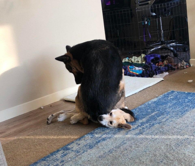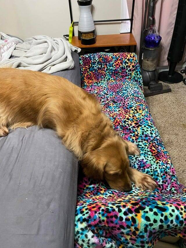 Сказал псу, чтобы он спал на своём месте, а не в кровати. Он почти послушался