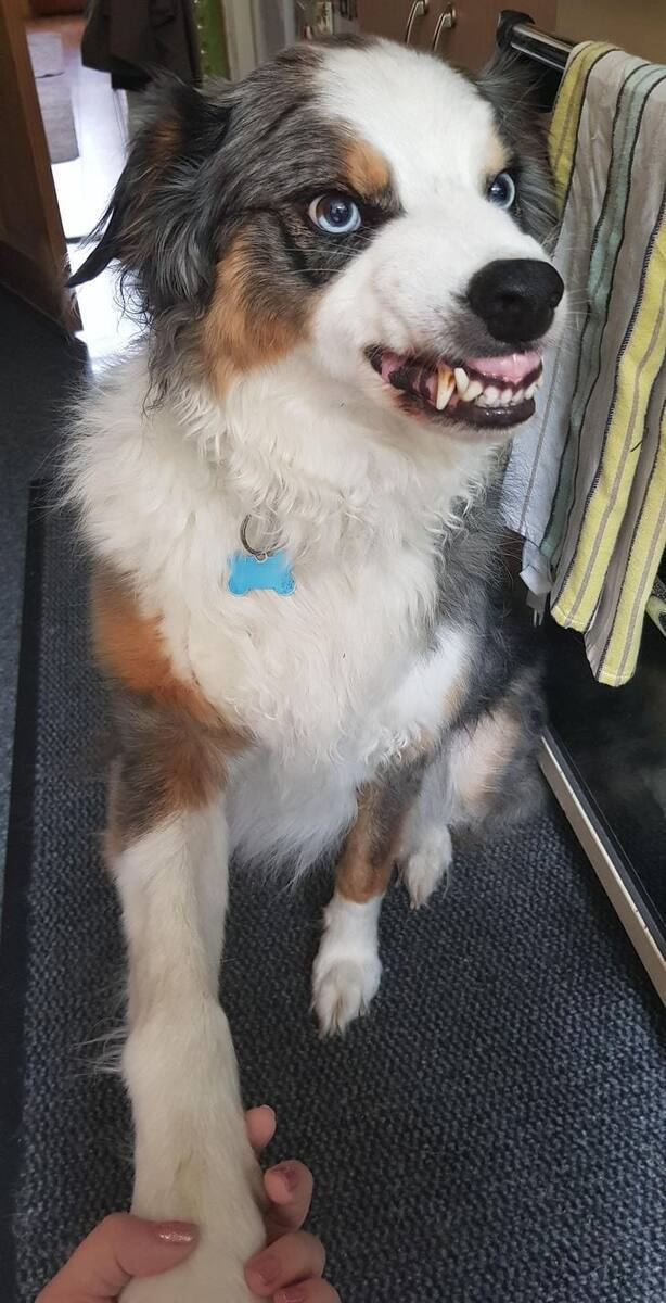 Настаивает, чтобы его взяли за лапу, а потом делает такое лицо
