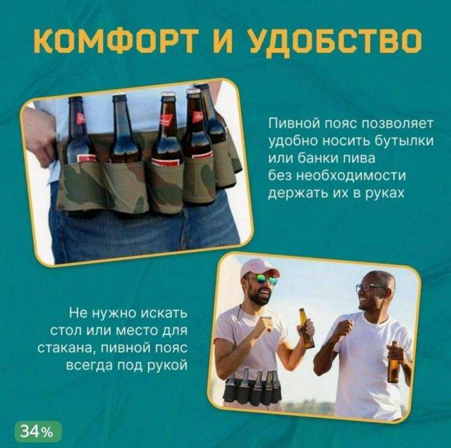 Не знаете, чем себя порадовать или что подарить другу? Ответ найдет - пивной пояс! Теперь вы с комфортом можете носить с собой дополнительный снаряд пенного. Удобно? Очень! Ищите на маркетплейсах.
