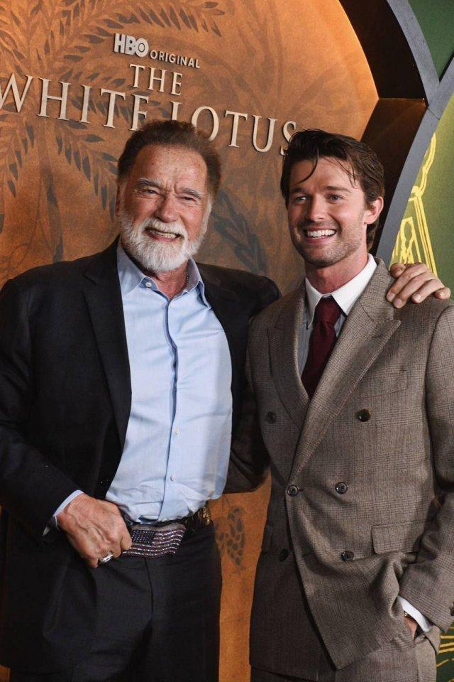 Сияющий от гордости Железный Арни поддержал своего сына Патрика Шварценеггера на премьере.