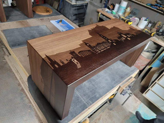 Я изготовил журнальный столик для клиентки с изображением достопримечательностей её родного города Эдинбурга в Шотландии