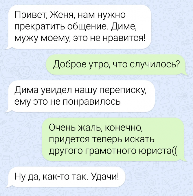 За каждым сообщением в чате могут стоять глубокие эмоции и неожиданные сюжетные повороты. Порой одно слово способно изменить весь тон разговора и привести к непредсказуемому исходу. Давайте посмотрим новую подборку забавных переписок, финал которых оказался таким удивительным, что даже представить себе трудно.