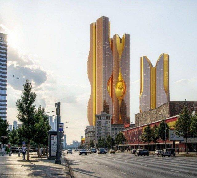 Около дома правительства в Москве хотят снести здание СЭВ, что выходит на Новый Арбат и построить там небоскерб. И вот какие идеи прислали на конкурс.