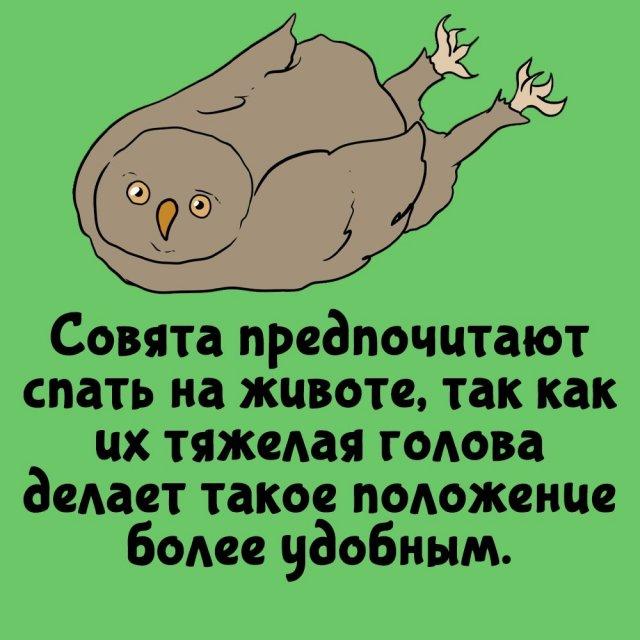 Этот способ сна сохраняется до тех пор, пока они не подрастут и не станут достаточно сильными, чтобы спать в вертикальном положении. По мере роста и развития совята постепенно учатся принимать более привычные для взрослых птиц позы во время отдыха.