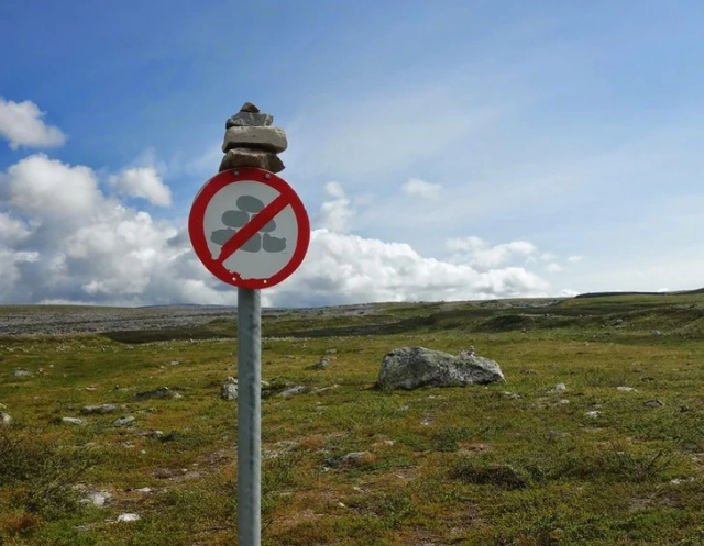 «Заметил в Норвегии этот знак, который запрещает строительство пирамид из камней»
