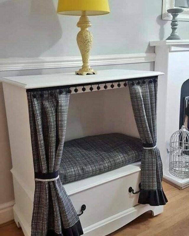 Тумбочки и небольшие комоды можно переделать в очаровательные места для сна домашних животных
