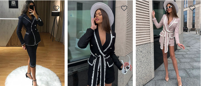 В повседневной жизни можно экспериментировать с фасонами и цветами. Стильный костюм с укороченным жакетом или брюками свободного кроя отлично смотрится в сочетании с трикотажными водолазками, футболками и кедами. Светлые и пастельные оттенки придают образу легкость, а клетчатый принт добавляет динамичности.