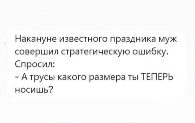Ну что, прошло 8 марта? Как оценили ваши подарки? но это уже не важно, можно выдохнуть, расслабиться и наслаждаться новыми шутками...