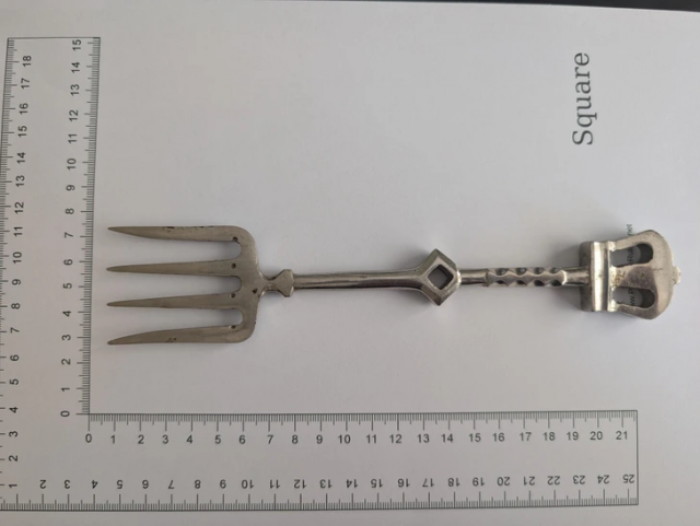 "Металлический предмет в форме ручки с петлей и шариком на конце"