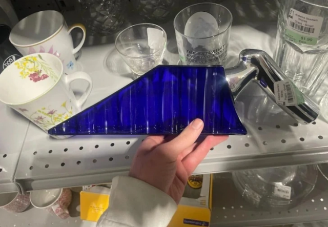 "Странный кобальтово-синий пластиковый предмет с металлическим элементом"