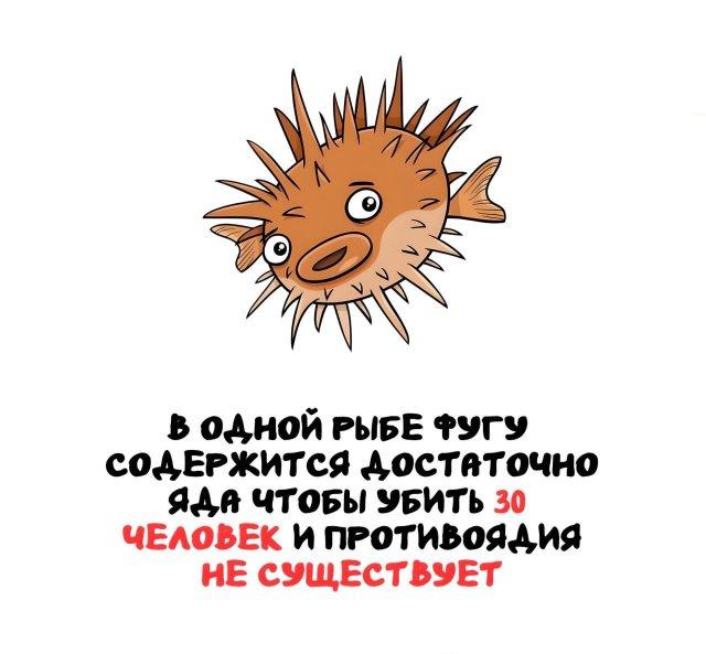 Что вреднее: алкоголь или выпечка? Насколько опасен может быть яд рыбы фугу? Что напоминает вкус жаренных червей? Как долго могут спать улитки? Это и многое другое узнайте в новой подборке интересных фактов на все случаи жизни.