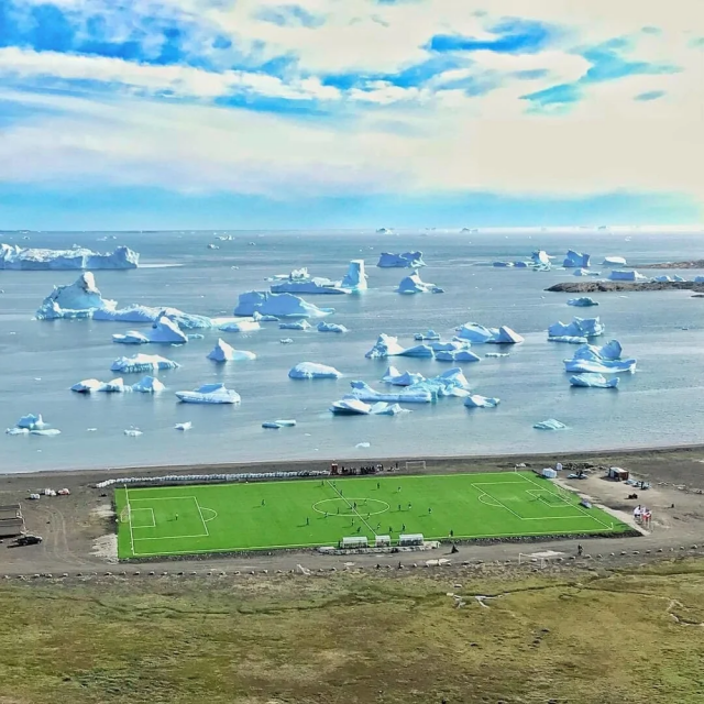 Вероятно, самое живописное футбольное поле в мире, Гренландия