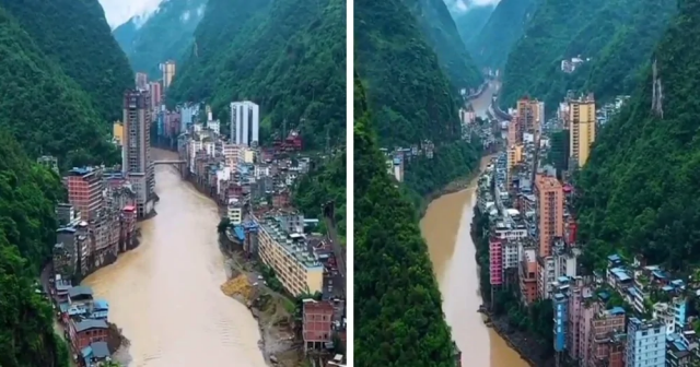 Очень длинный китайский город на реке Наньсихэ в провинции Юньнань