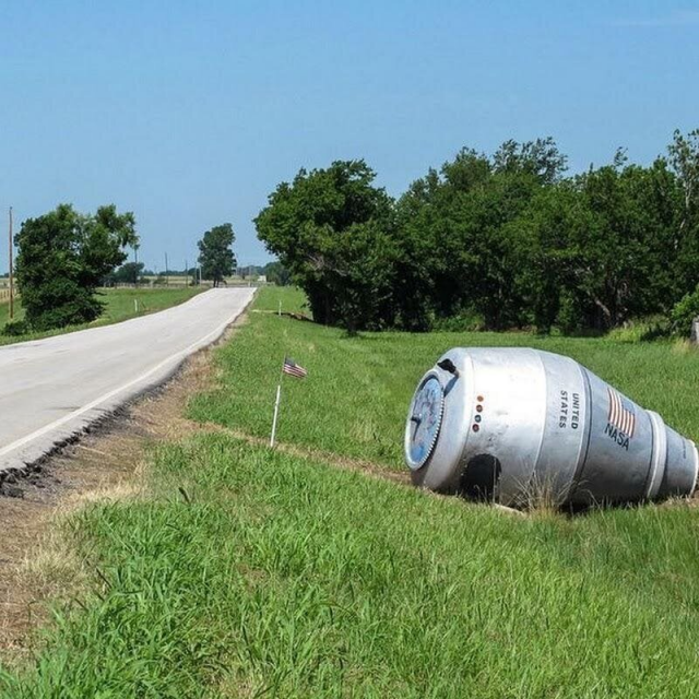Ложная космическая капсула НАСА — достопримечательность городка Винганон, Оклахома, США. В 1971 году возле города перевернулся грузовик с цементом. Миксер оказался слишком тяжелым из-за застывшего цемента, поэтому его так и оставили. Позже местные жители перекрасили его, обозначив все визуальные атрибуты космической капсулы.