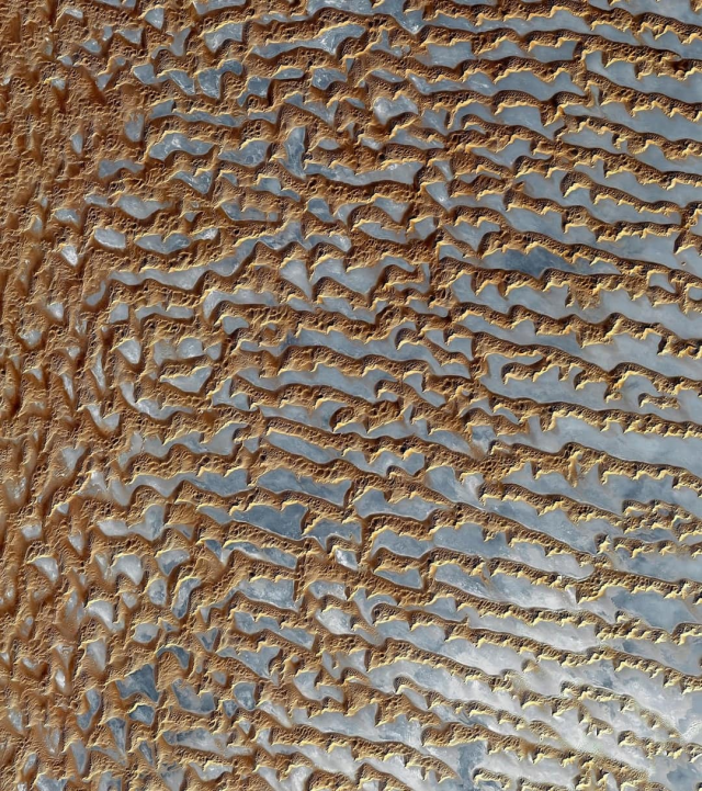 Песчаные дюны пустыни Руб-эль-Хали, Аравийский полуостров. Вид из космоса.