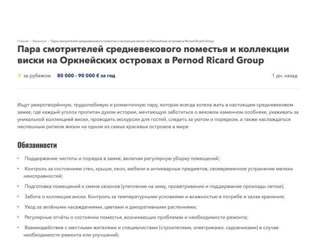В Шотландии ищут пару для работы в замке с коллекцией виски за 680 000 рублей! Сотрудникам предстоит жить в настоящем замке на Оркнейских островах и просто присматривать за элитным виски. Дегустация разрешена! Любопытная работенка...