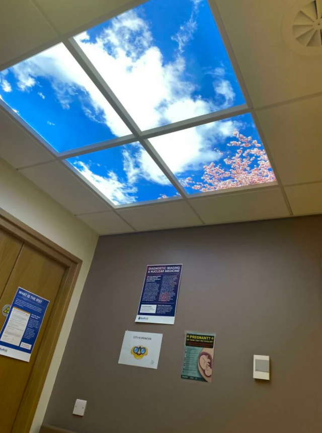 Поднимает настроение: дизайнер позаботился о беременных, сделав на потолке женской консультации красивое светодиодное фальшокно в виде неба