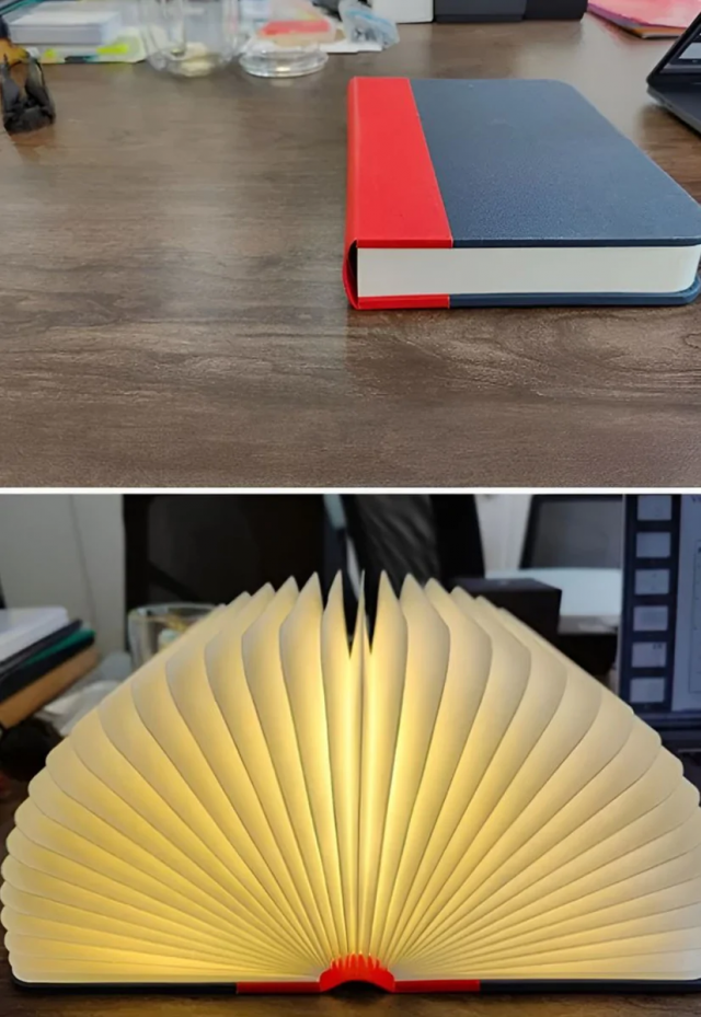 Супер-идея: дизайн настольной лампы выполнен в виде книги. Когда ее раскрывают, она загорается