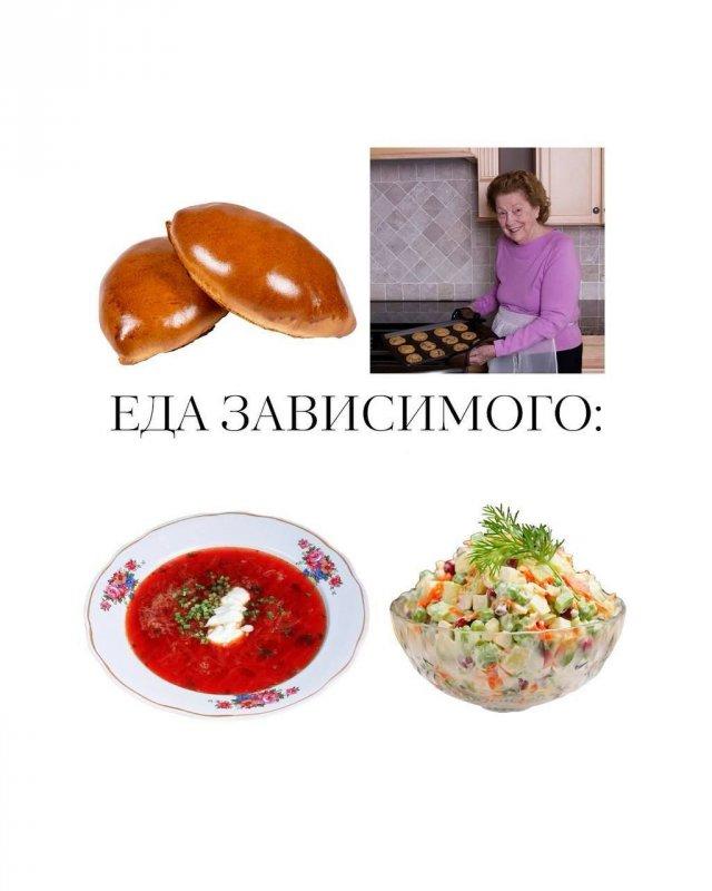 • Зависимый — борщ, пирожки, оливье;