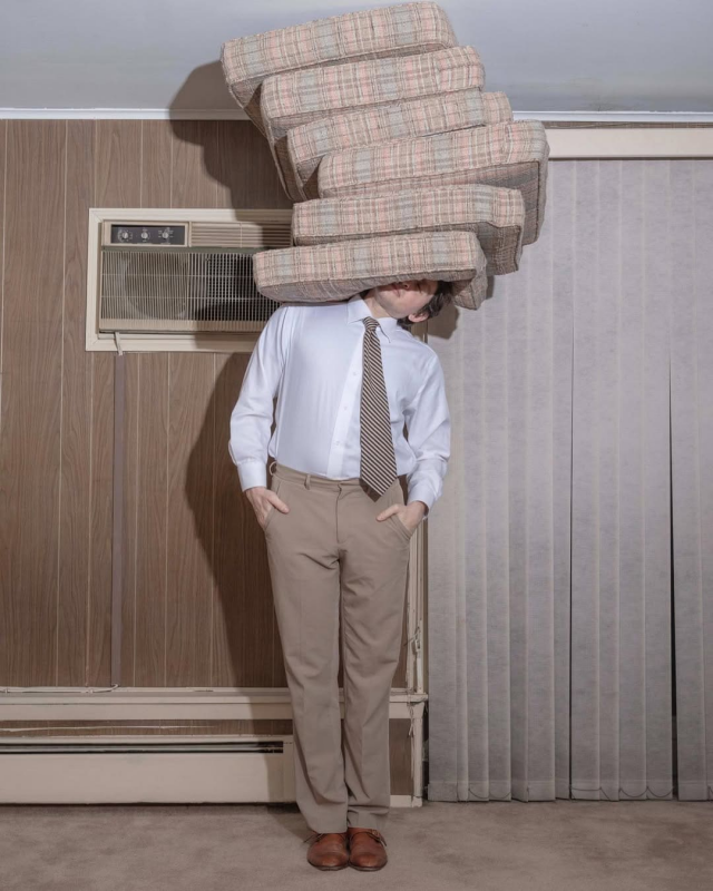 Фотограф из США Бен Занк создает сюрреалистические кадры, граничащие с абсурдом. Но стоит признать, что они впечатляют и заставляют задуматься. Также Занк сопровождает снимки остроумными и порой глубокими подписями. Его работы зачастую показывают одиночные фигуры в нестандартных позах, погруженных в искаженную реальность знакомых нам мест и ситуаций.