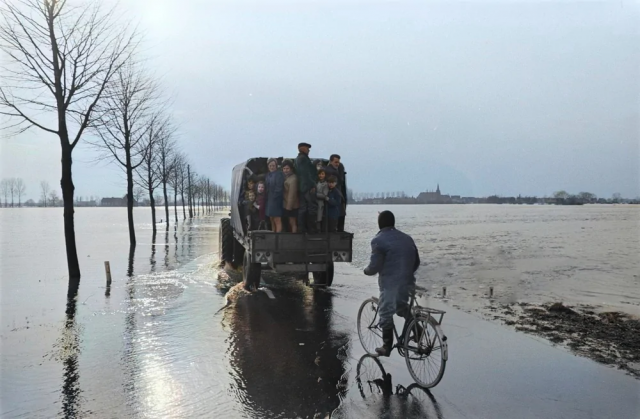 Наводнение в Лимбурге из-за высокого уровня реки Маас. Нидерланды, 1970 год.