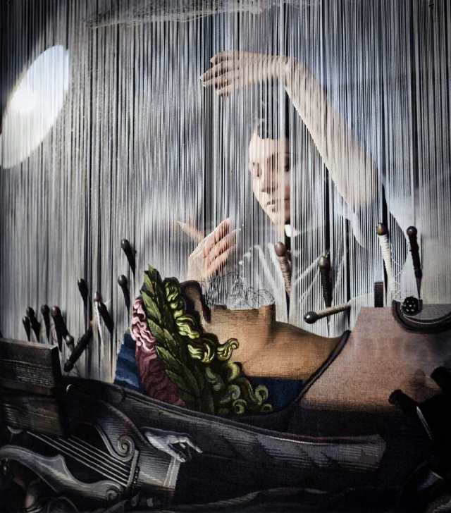 Женщина работает над гобеленом на Мануфактуре гобеленов. Париж, 1945 год.