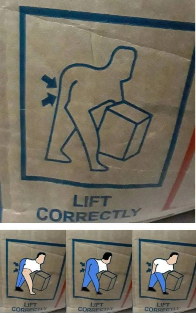 «Увидел эту странную инструкцию. Даже не представляю, как поднять коробку так, как показано на картинке»