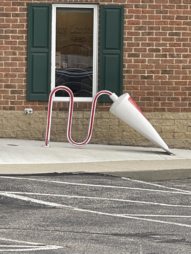 У этой стоматологической клиники установлена стоянка для велосипедов в виде тюбика и зубной пасты