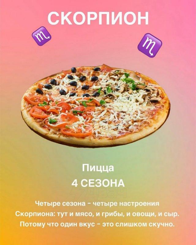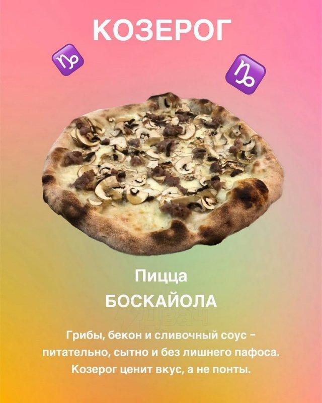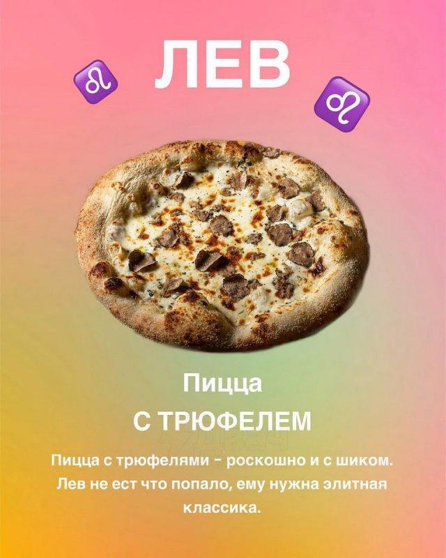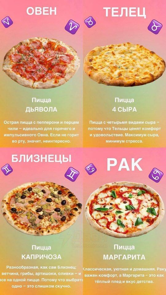 Ну что ж, а теперь перейдем к действительно важным исследованиям. Астрологи выяснили, какая пицца соответствует вашему знаку зодиака. Давайте проверим, все ли совпало.