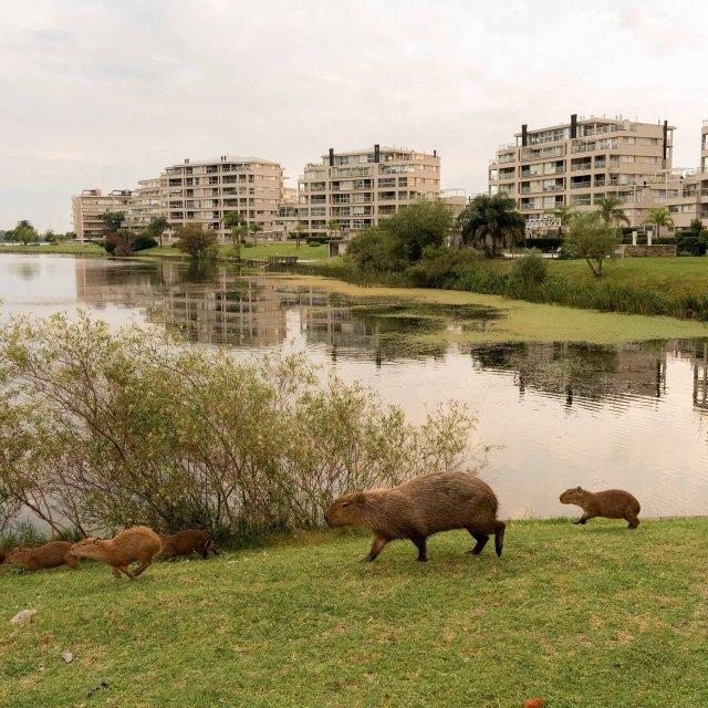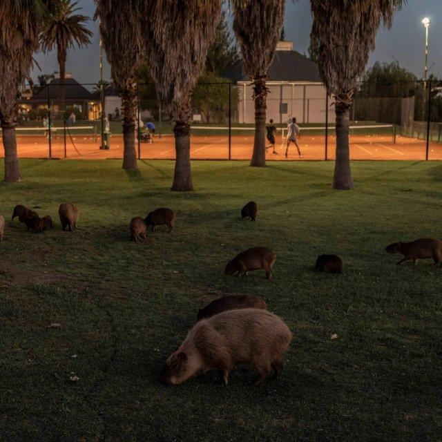 Капибары захватили пригород Буэнос-Айреса! В элитном районе города орудует больше тысячи пушистых захватчиков. Грызуны гоняют по улицам, жрут цветы, лезут в драки с собаками, провоцируют аварии и ломают заборы. Садики, корты и пруды — все под контролем капибар. Дело в том, что за пару лет их популяция утроилась, теперь животных массово стерилизуют.