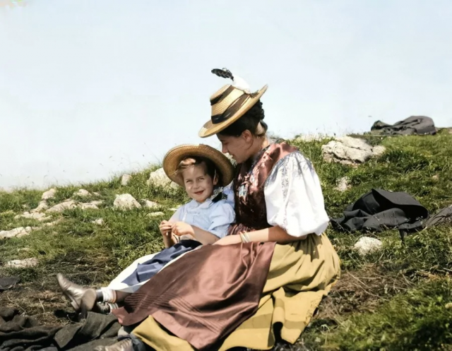 Мать и дочь на вершине горы. Австро-Венгрия, 1904 год.