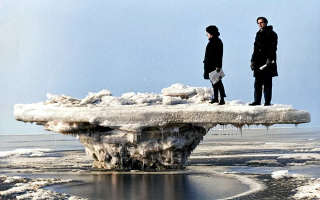 Ледяной «стол», который сформировался на морском побережье после отлива. Нидерланды, 1963 год.
