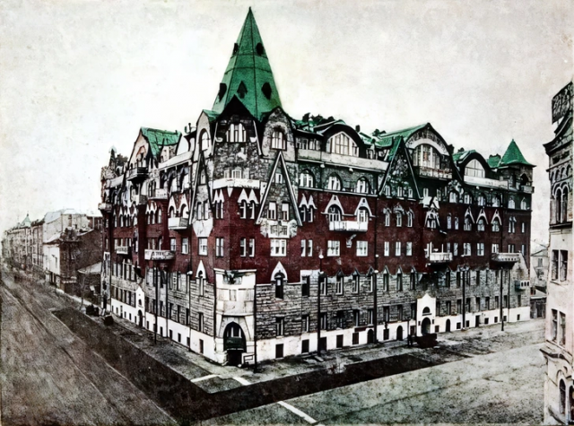 Проект дома-сказки, как его прозвали местные за яркие и необычные фасады, принадлежит архитектору Александру Бернардацци. Это был доходный дом. Он вобрал в себя причудливый микс черт различных романтических стилей. Там можно было увидеть и балконы оригинальной формы, и красочные панно, и стены, облицованные природным камнем. Все это напоминало театральную декорацию. Некоторое время в этом доме жила балерина Анна Павлова.