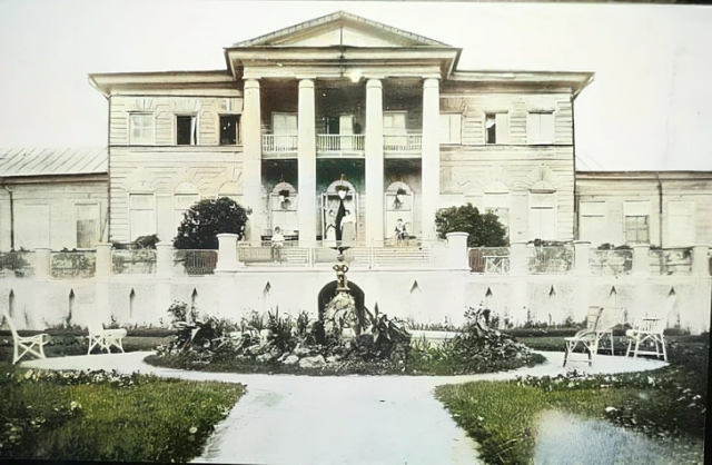 Усадьба была построена в конце XVIII века в стиле классицизма. Она была выполнена по образцу популярных в то время усадеб — «монплезиров». В 1996 году удалось установить автора этого сооружения — им был Матвей Казаков. Дом был выстроен из красного кирпича и облицован белым камнем. Также на территории усадьбы располагалось несколько флигелей и парк. Вот такие воспоминания оставила одна из гостей этого комплекса: «Вся усадьба располагалась на возвышенности, отчего парк в двадцать семь десятин был всегда пронизан солнцем».