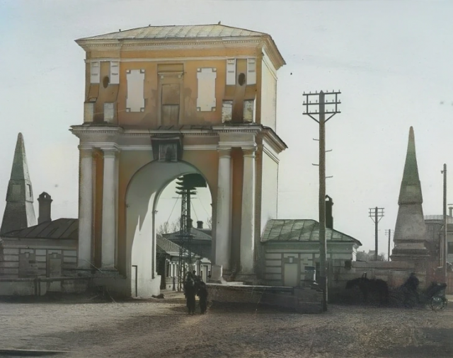 Эти ворота были построены в 1775 году. Перед создателями стояла цель выстроить «триумфальные ворота не хуже римских». Арку соорудили в античном стиле с украшениями в виде дорических колонн. До 1935 года она была одной из основных достопримечательностей Калуги.