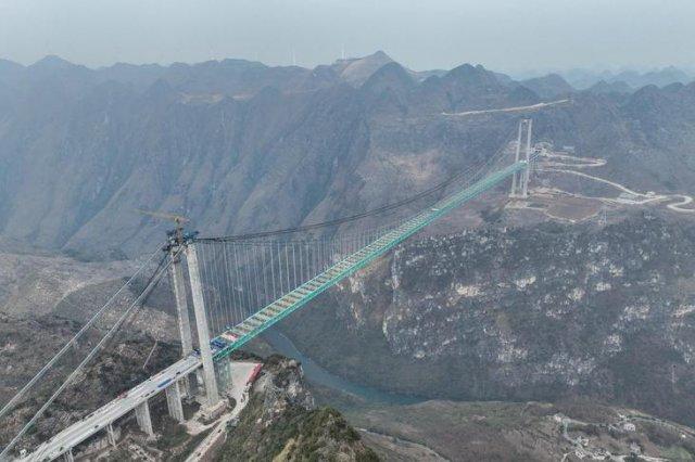 Этот инженерный шедевр откроют в Китае летом 2025 года. Он получил название Гранд-Каньон Хуацзян в провинции Гуйчжоу. Высота моста — 625 метров над уровнем моря, длина моста — 2890 метров (почти 3 километра, вы только представьте!), вес стальных ферм — около 22 000 тонн (это примерно три Эйфелевы башни).
